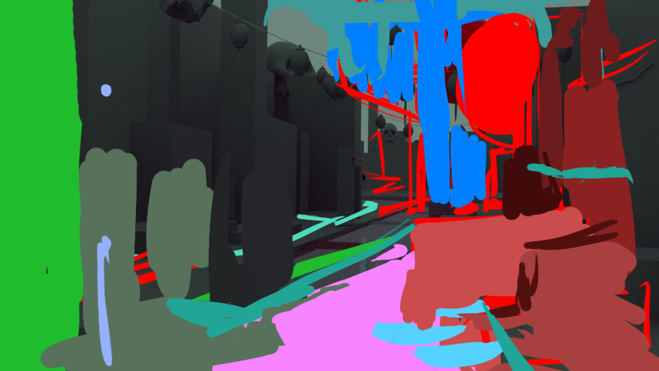 然后, 由于我实在不知道 我的sub subject 会是怎么样的, 实话实说,我除了故事, 我对我的environment 一无所有, 也一无所知, 我其实觉得 我这个concept 就是错误的, 我应该换个比较好搞的concept 而不是一上来就挑战城市这种元素怎么多的场景, 但是没办法, 都走到这里了, 怎么能放弃呢, 所以。。。 我最后 只能用颜色画了一下前后景关系, 在后面建模搭建阶段帮助自己更好的理解 深度和前后关系。
