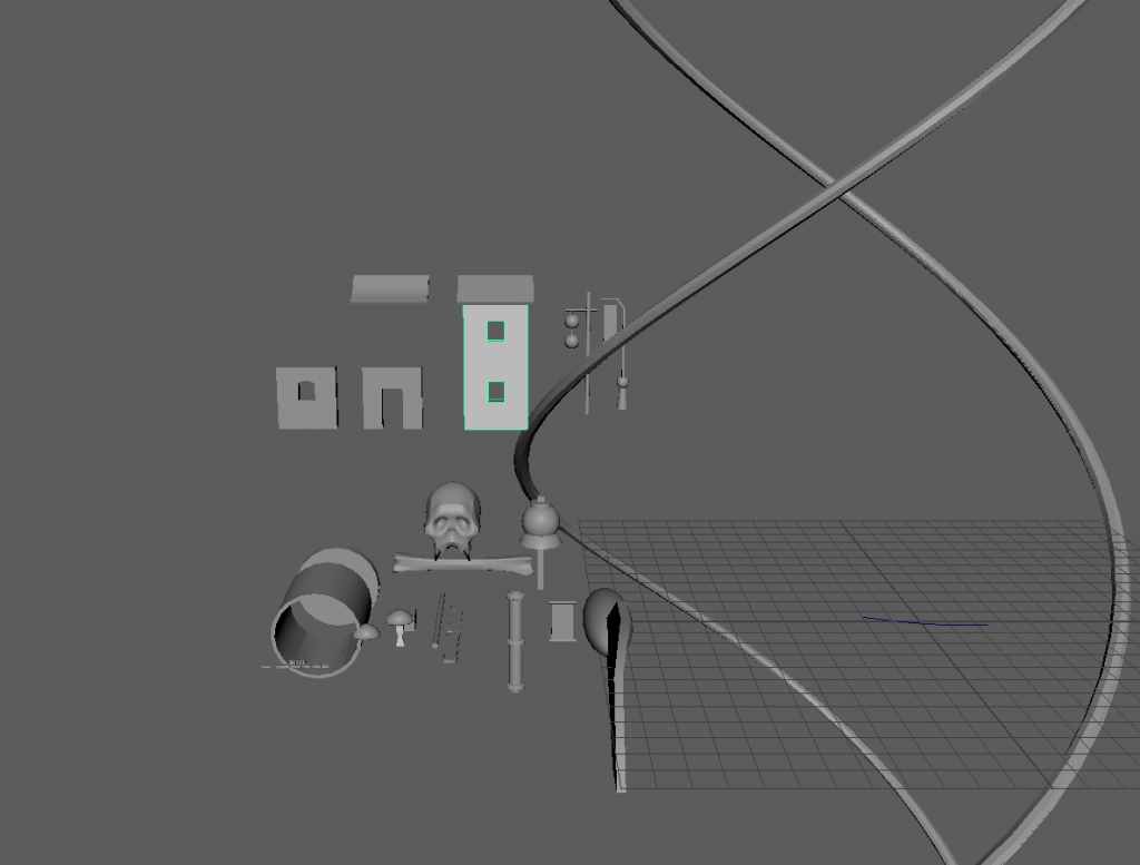 由于时间紧张 + 这是我第一个 制作 比较大的 环境项目 (我在大多数时间只设计角色 或者角色相关的 故事情节的体现), 我其实。。。不太清楚我要干什么。 于是我只是来到 maya 然后开始创建各种 方块 开始搭建。